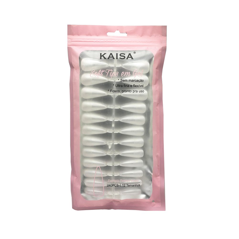 Soft Tips em Gel Stileto Transparente Base Fosca Kaisa 240 unidades