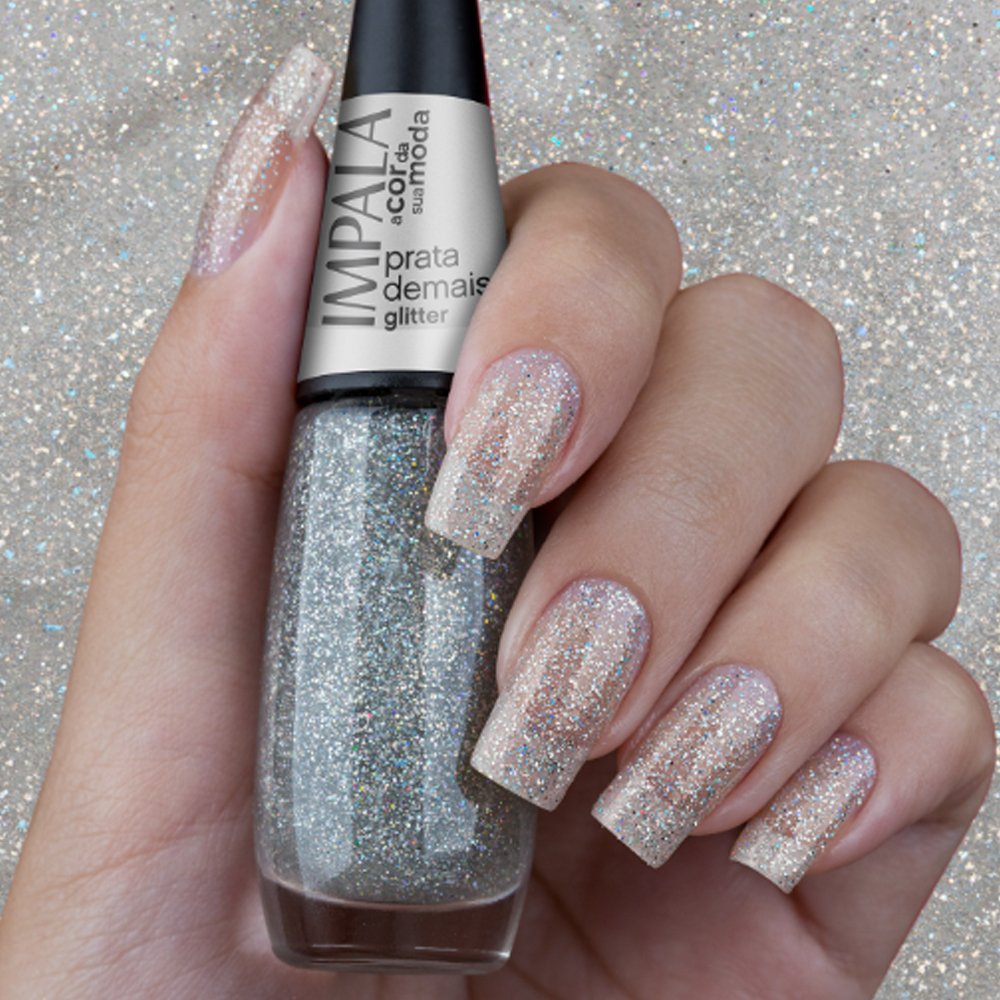 Esmalte Impala Prata Demais Glitter 7,5ml