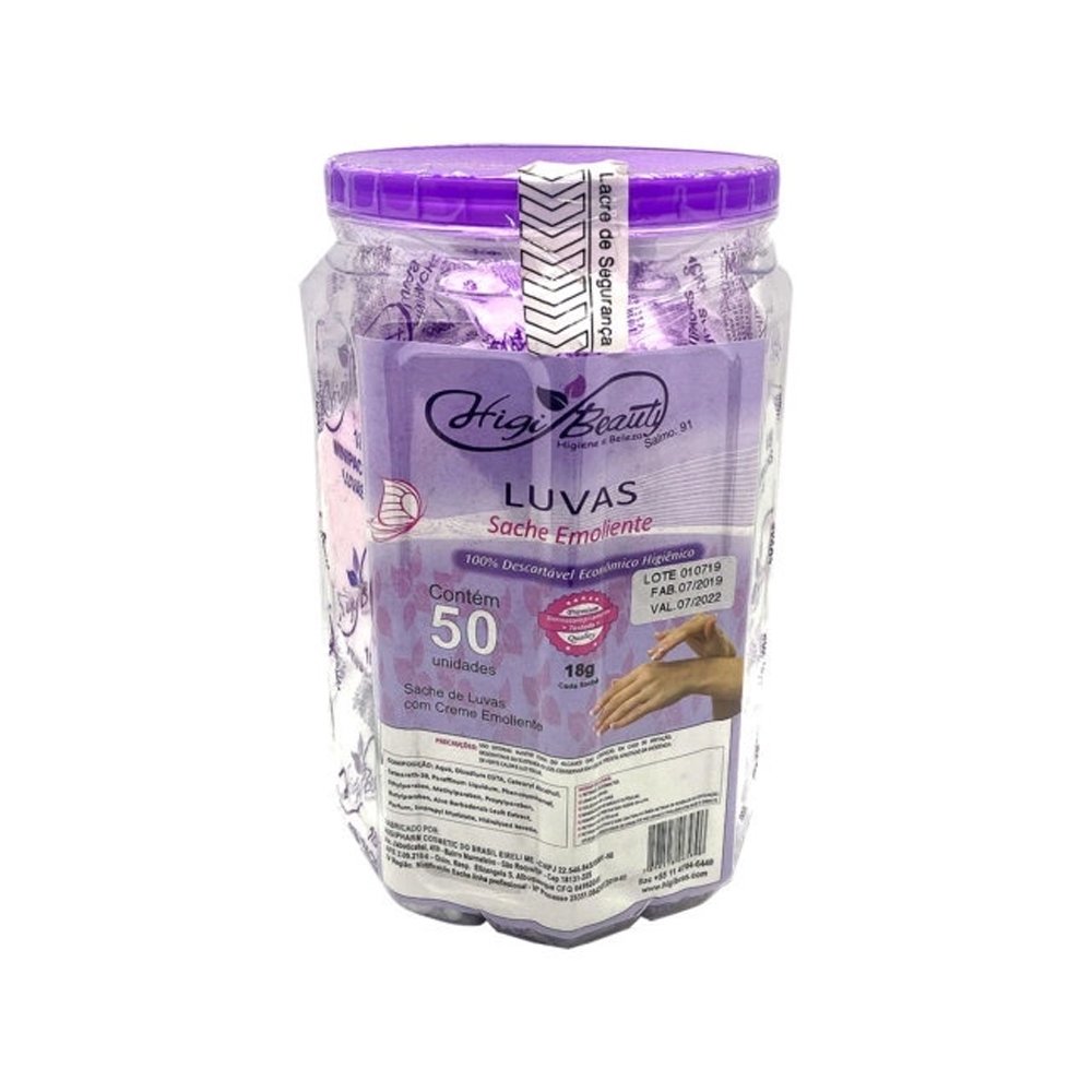 Pote Luvas Sache Emoliente HigiBras 50 Unidades