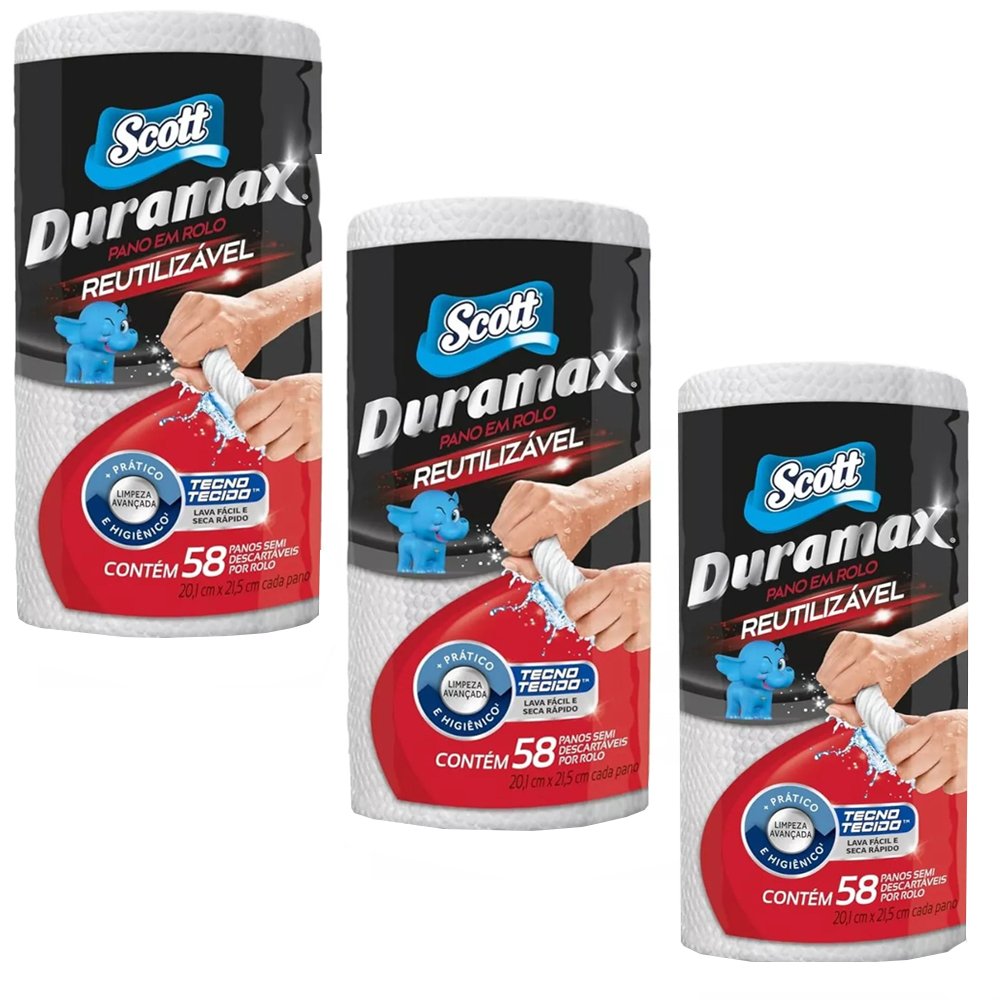 Kit 3 Pano Reutilizável Duramax Scott 58 unidades Branco